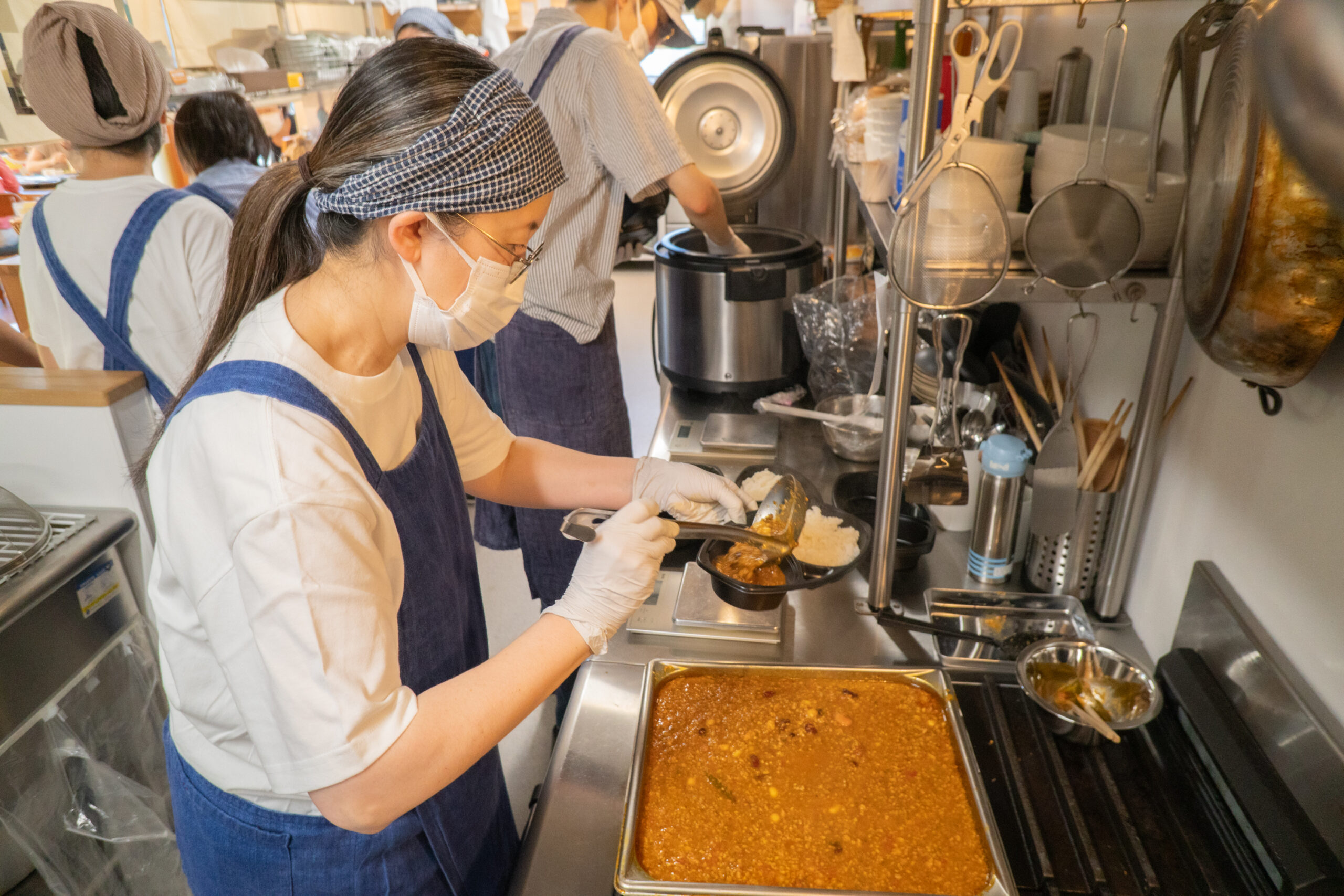 サポートランチデイでは、子どもから高齢者まで無料でカレーを提供しています。